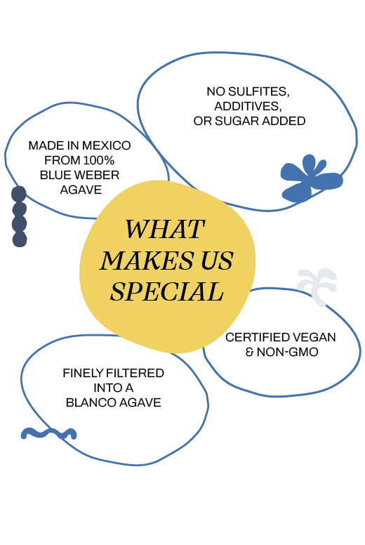 Ola Sol is the cleanest, highest quality agave wine on the market. Unlike other agave wines, we extensively filter ours to create a crystal clear blanco without adding any sulfites, sugars, or other additives. Our wine is certified vegan, non-GMO and gluten free.